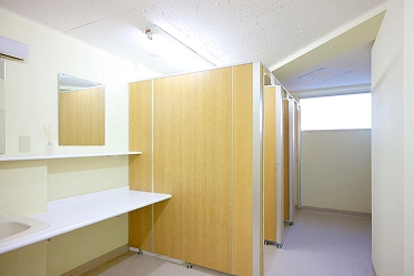 Shower rooms and large bathrooms.Large bathrooms are only available on Sundays.